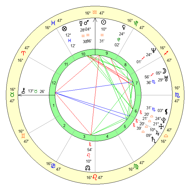 | Venus | 24 Capricorn 3 | 26 Pisces 14 | 19 Pisces 2 |