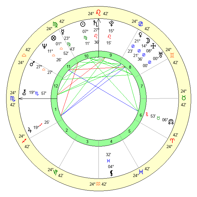 | Sun | 7 Virgo 12 | 7 Virgo 34 | 23 Scorpio 15 |