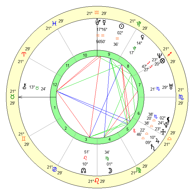 | Moon | 1 Virgo 30 | 12 Scorpio 2 | 4 Aries 23 |