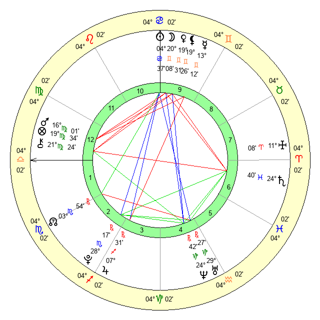Sun | 4 Cancer 37 | 5 Cancer 20 | 3 Leo 14 |