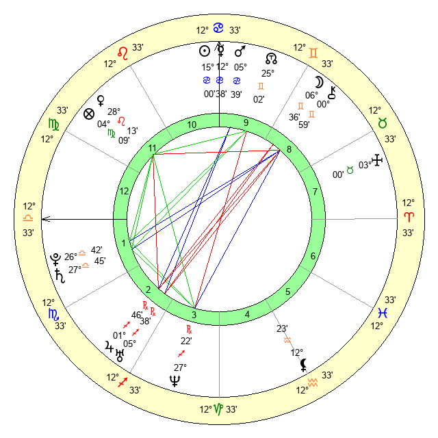 | Venus | 28 Leo 14 | 3 Gemini 23 | 5 Virgo 16 |