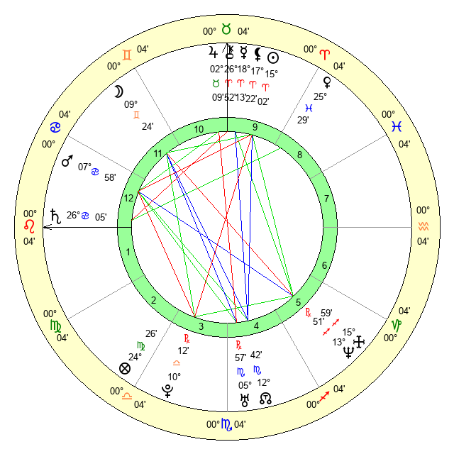 | Neptune | 13 Sagittarius 51 | 0 Aries 11 | 12 Sagittarius 51 |