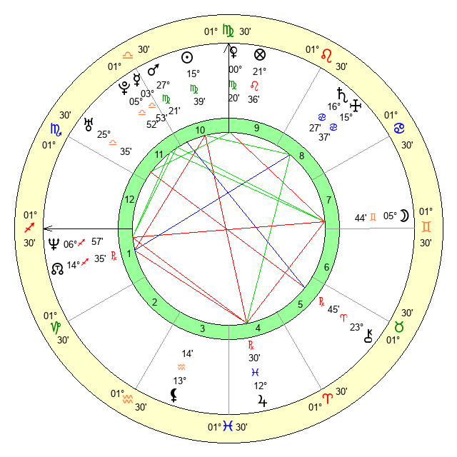 | Sun | 15 Virgo 39 | 16 Virgo 18 | 5 Scorpio 53 |