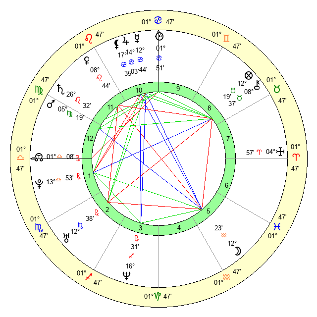 | Moon | 12 Aquarius 18 | 8 Gemini 40 | 20 Libra 43 |