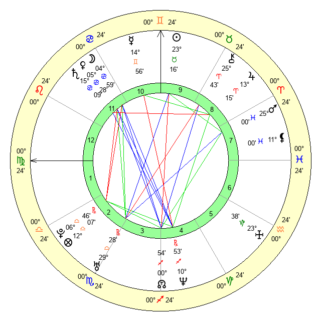 | Moon | 5 Cancer 6 | 16 Sagittarius 18 | 3 Taurus 30 |