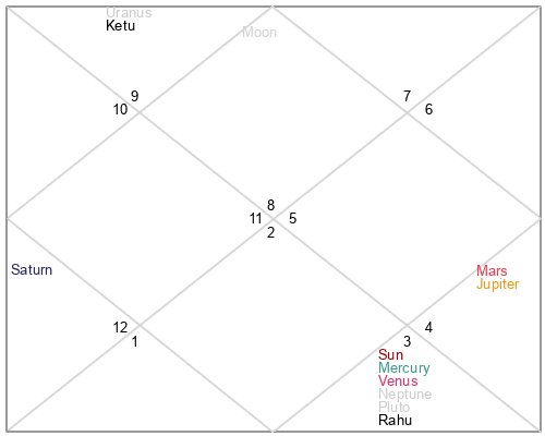 | Rahu | 4 Cancer 19 | 21 Pisces 23 | 28 Gemini 7 |