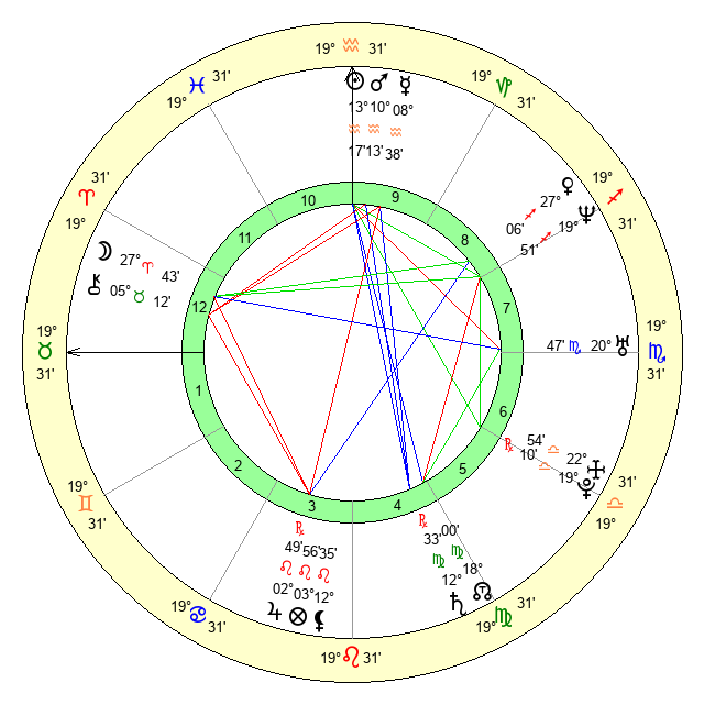 | Moon | 27 Aries 41 | 9 Aries 57 | 20 Sagittarius 17 |