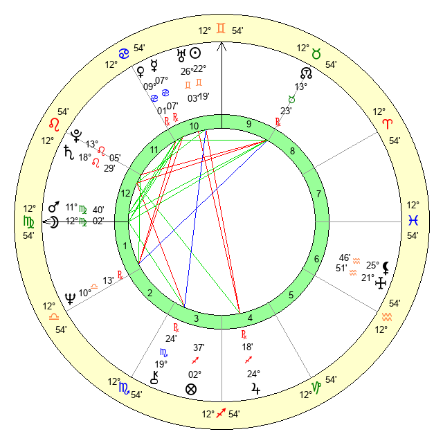 | Moon | 12 Virgo 6 | 17 Capricorn 21 | 26 Gemini 40 |