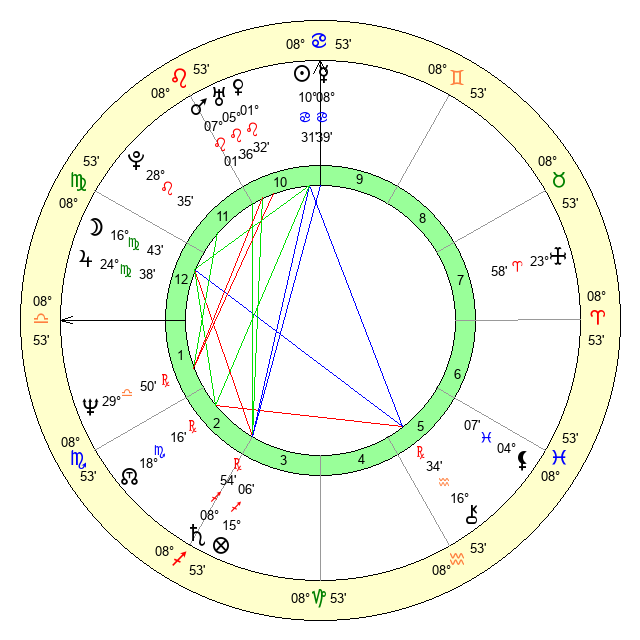 | Sun | 10 Cancer 31 | 11 Cancer 4 | 15 Virgo 45 |