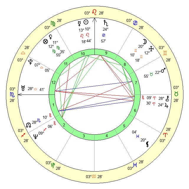 | Mercury | 13 Leo 19 | 7 Leo 4 | 23 Libra 28 |