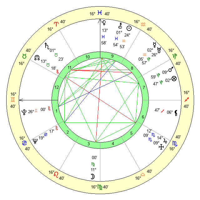 | Moon | 11 Virgo 1 | 20 Virgo 25 | 11 Scorpio 48 |