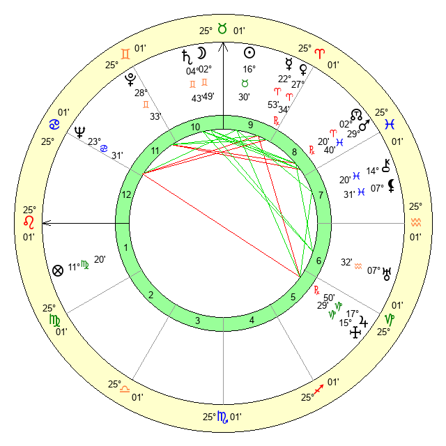 | Mars | 29 Pisces 41 | 8 Leo 44 | 18 Gemini 54 |