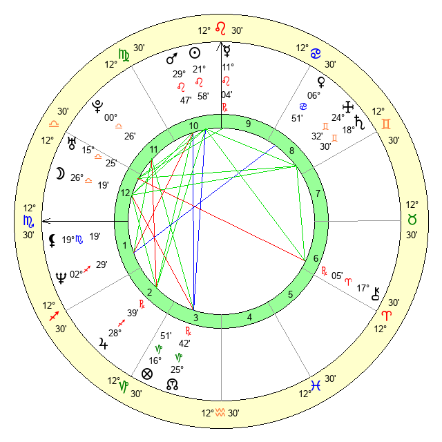Mercury | 11 Leo 3 | 4 Leo 55 | 25 Libra 41 |