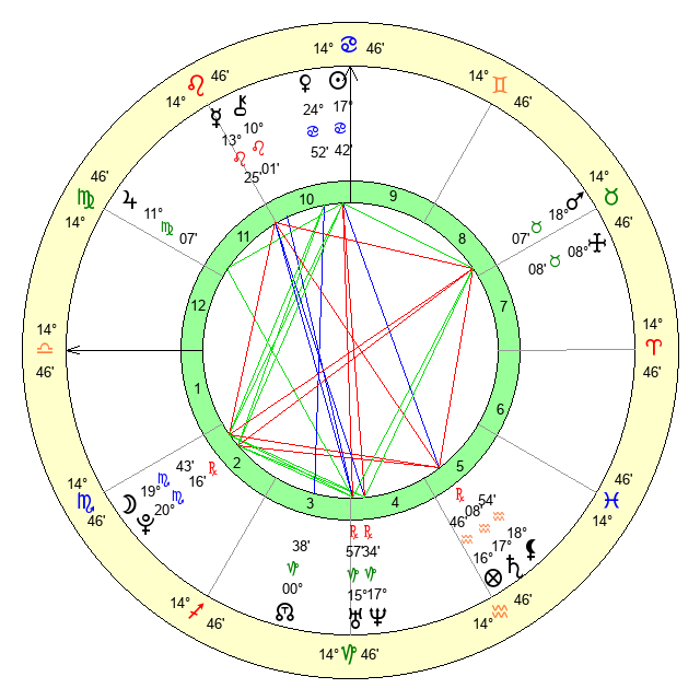 Venus | 24 Cancer 52 | 5 Gemini 37 | 5 Virgo 28 |