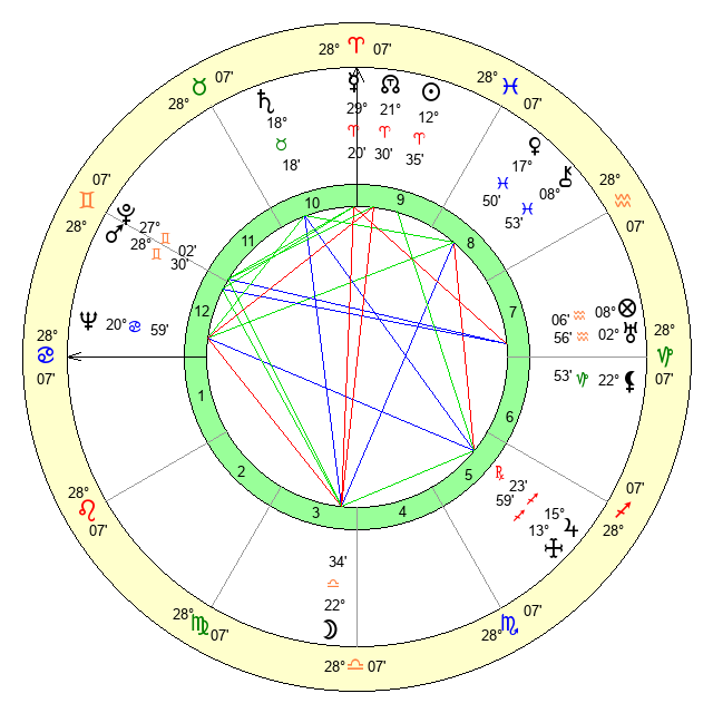 | Moon | 22 Libra 31 | 12 Gemini 27 | 12 Sagittarius 0 |