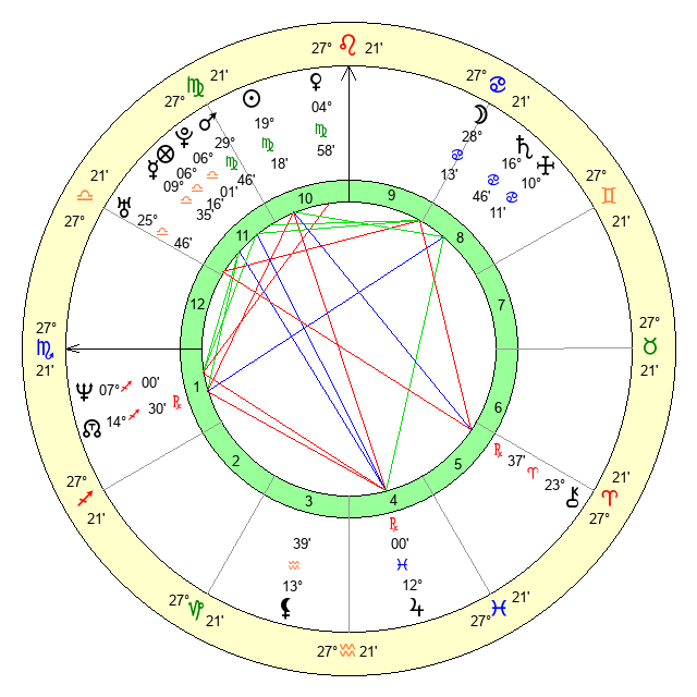 | Venus | 4 Virgo 58 | 21 Leo 23 | 8 Scorpio 36 |