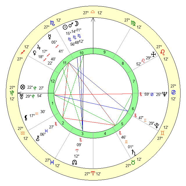 | Moon | 11 Scorpio 9 | 0 Cancer 56 | 1 Capricorn 34 |
