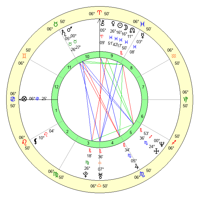 | Moon | 16 Pisces 22 | 0 Cancer 21 | 20 Pisces 17 |
