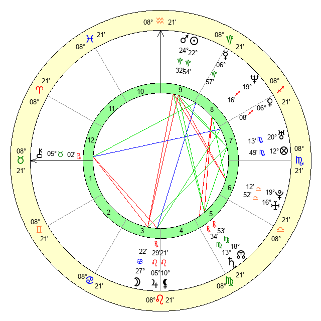 | Saturn | 13 Virgo 59 | 15 Pisces 31 | 11 Virgo 3 |