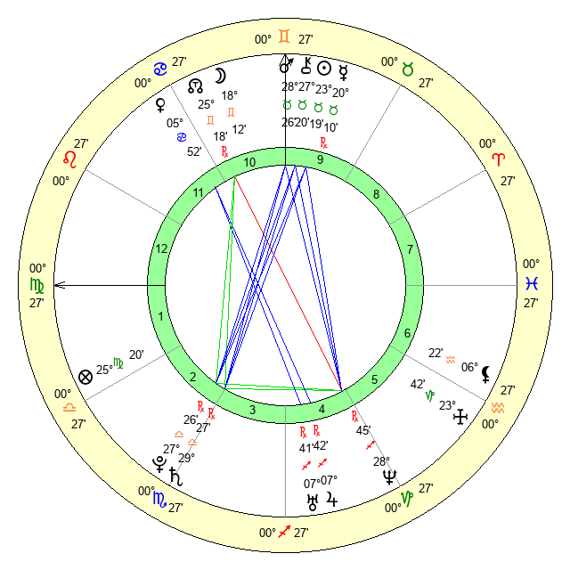 | Moon | 18 Gemini 16 | 16 Sagittarius 18 | 7 Capricorn 21 |
