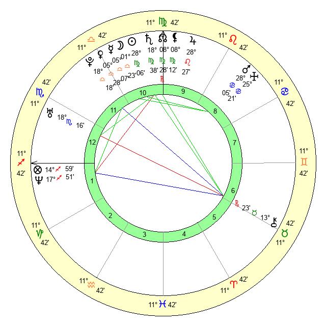 | Moon | 1 Libra 29 | 27 Virgo 27 | 15 Gemini 53 |