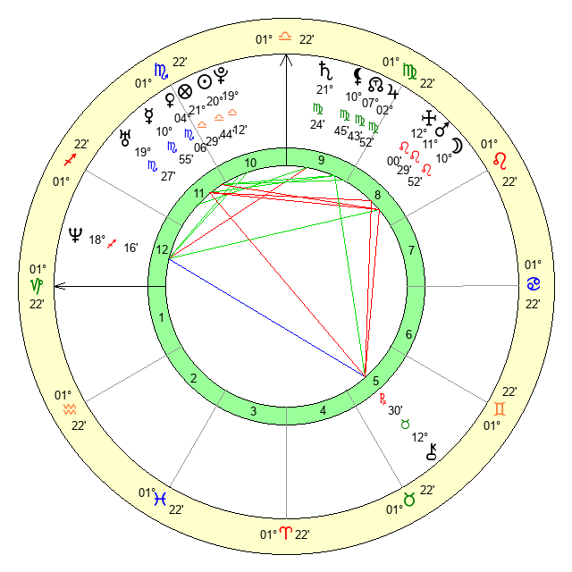 | Mars | 11 Leo 30 | 15 Scorpio 18 | 4 Virgo 12 |