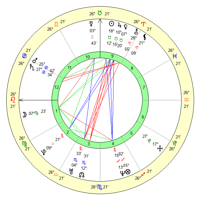 | Moon | 7 Virgo 25 | 4 Libra 51 | 24 Gemini 31 |
