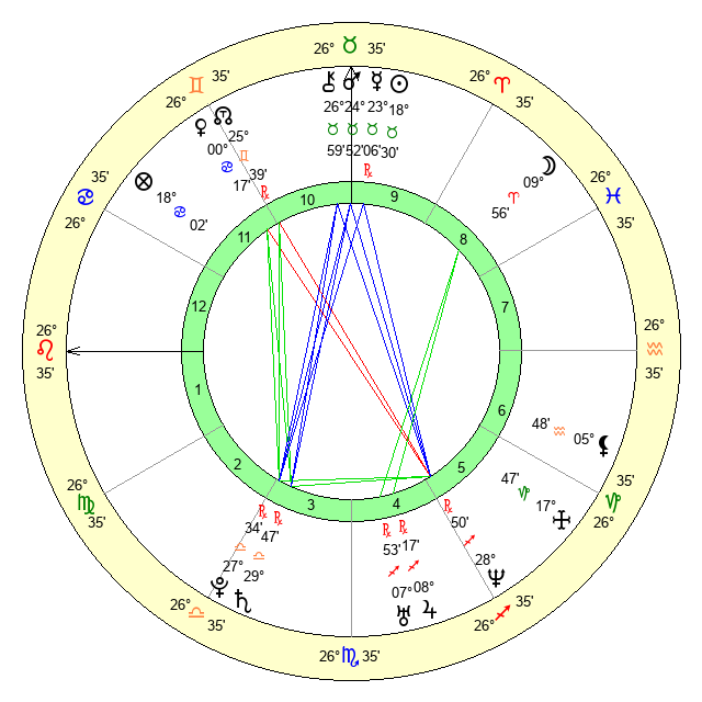 | Mars | 24 Taurus 53 | 9 Leo 42 | 24 Gemini 11 |