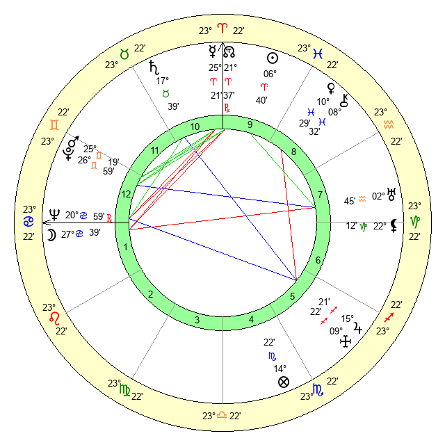 | Moon | 27 Cancer 50 | 12 Pisces 58 | 23 Virgo 47 |