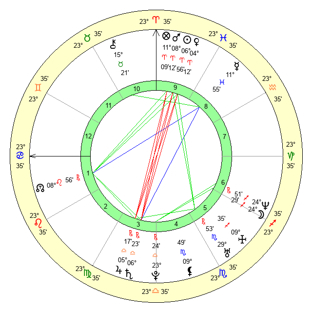 | Jupiter | 5 Libra 7 | 15 Gemini 20 | 0 Libra 43 |