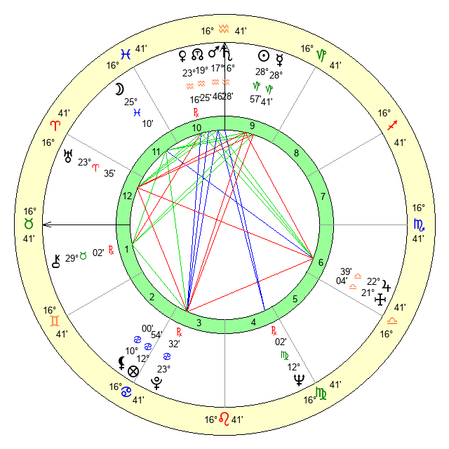 | Moon | 25 Pisces 7 | 6 Libra 37 | 17 Cancer 4 |