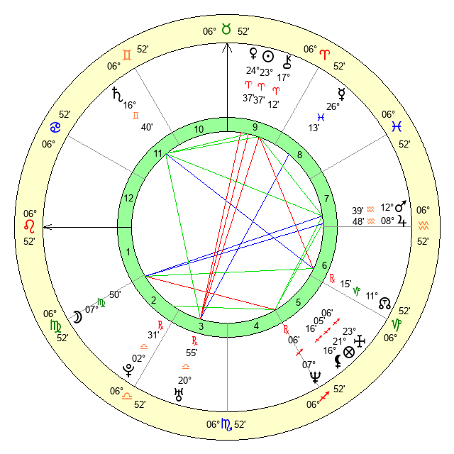 Moon | 7 Virgo 50 | 1 Scorpio 27 | 3 Leo 9 |