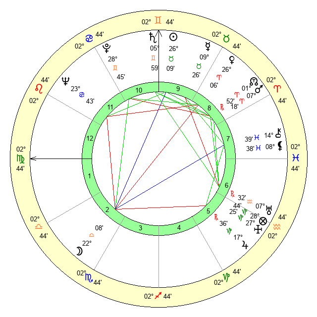 | Saturn | 6 Gemini 36 | 29 Pisces 18 | 18 Gemini 18 |