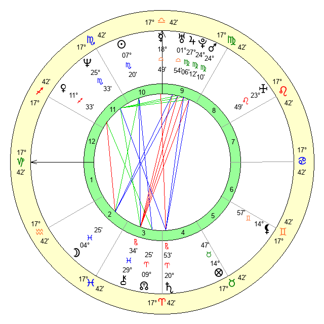 Moon | 4 Pisces 24 | 17 Libra 57 | 23 Pisces 30 |
