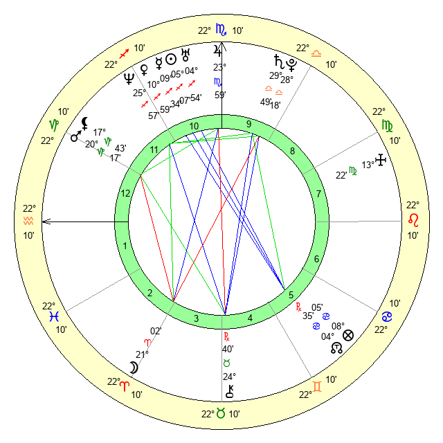 | Mars | 20 Capricorn 17 | 5 Leo 37 | 23 Aquarius 4 |