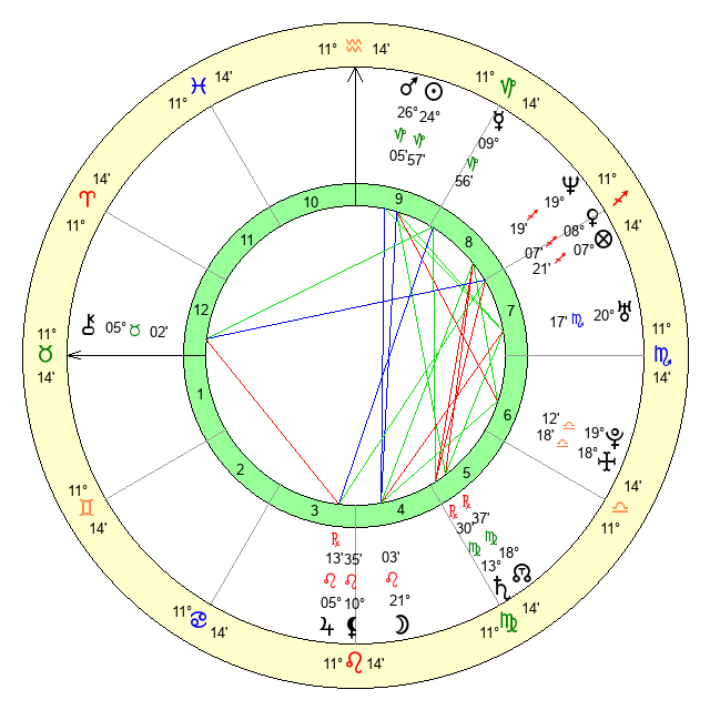 | Saturn | 13 Virgo 55 | 15 Pisces 42 | 10 Virgo 54 |