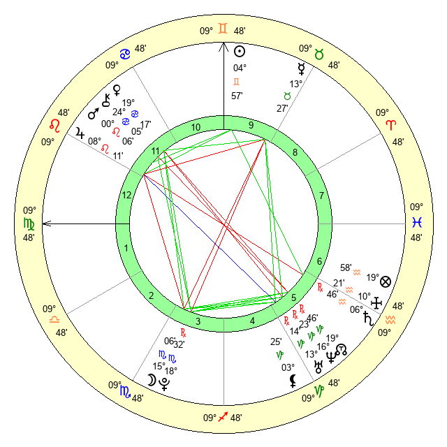 | Sun | 4 Gemini 57 | 5 Gemini 42 | 7 Cancer 27 |