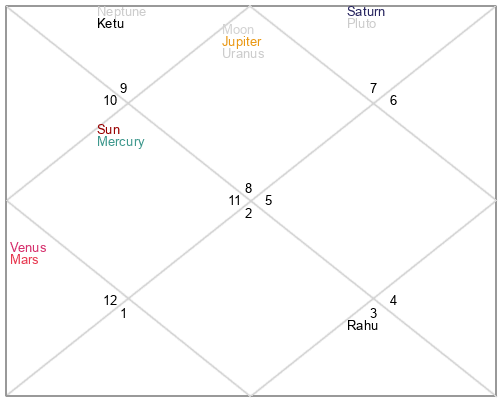 | Jupiter | 10 Sagittarius 0 | 12 Gemini 40 | 10 Sagittarius 9 |