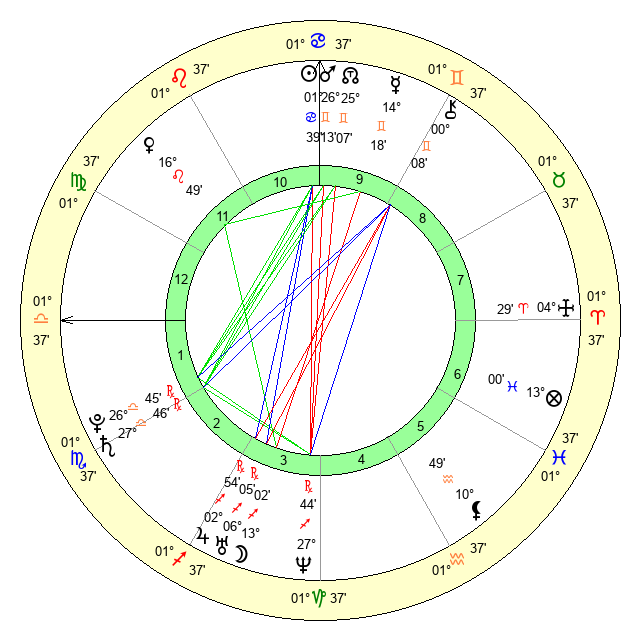 | Moon | 12 Sagittarius 54 | 8 Gemini 40 | 14 Gemini 59 |