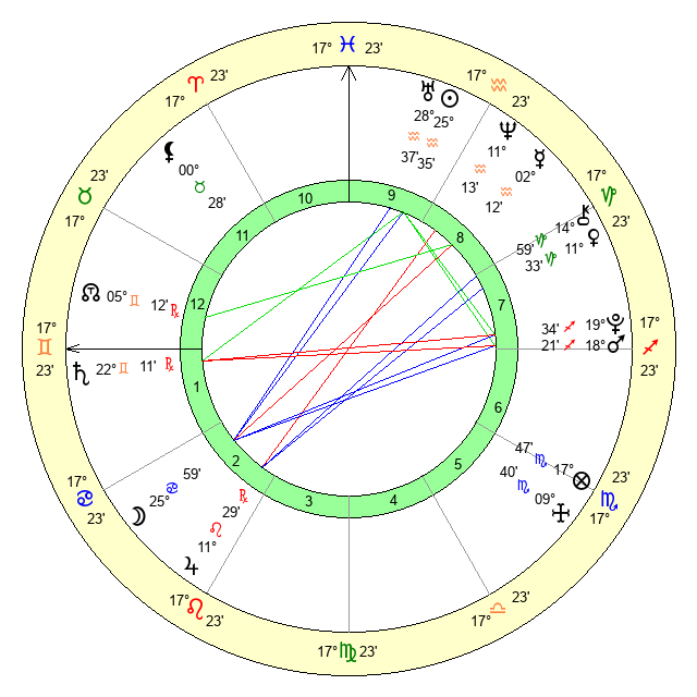 | Sun | 25 Aquarius 35 | 26 Aquarius 15 | 17 Pisces 42 |