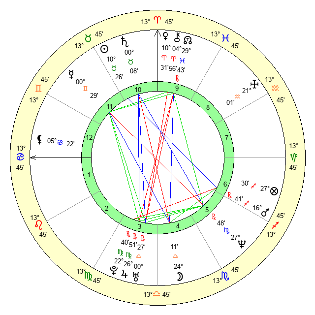 | Moon | 24 Libra 13 | 25 Gemini 36 | 10 Scorpio 42 |