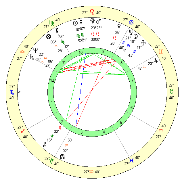 | Mercury | 7 Virgo 21 | 2 Virgo 12 | 22 Scorpio 3 |