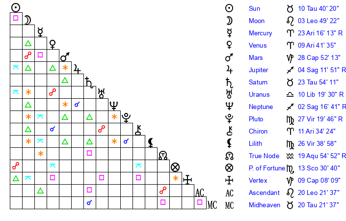 Venus | 9 Aries 41 | 0 Aries 34 | 15 Gemini 6 |