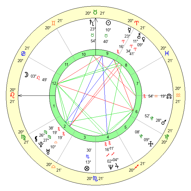 Moon | 3 Leo 54 | 5 Cancer 46 | 24 Cancer 26 |