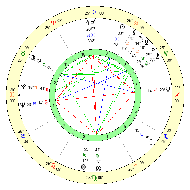 | Mars | 27 Pisces 21 | 17 Cancer 1 | 25 Gemini 19 |