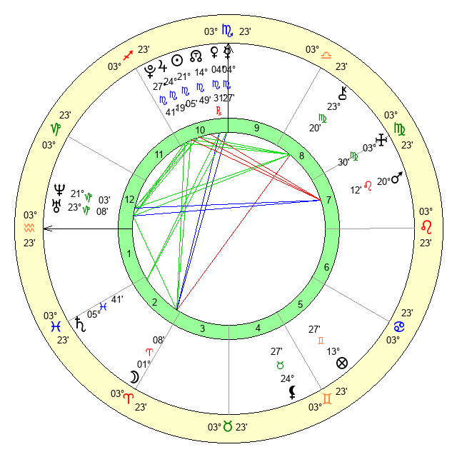 | Moon | 1 Aries 10 | 9 Virgo 1 | 15 Taurus 46 |