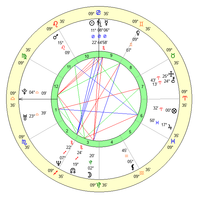 Sun | 11 Cancer 22 | 12 Cancer 1 | 0 Virgo 10 |