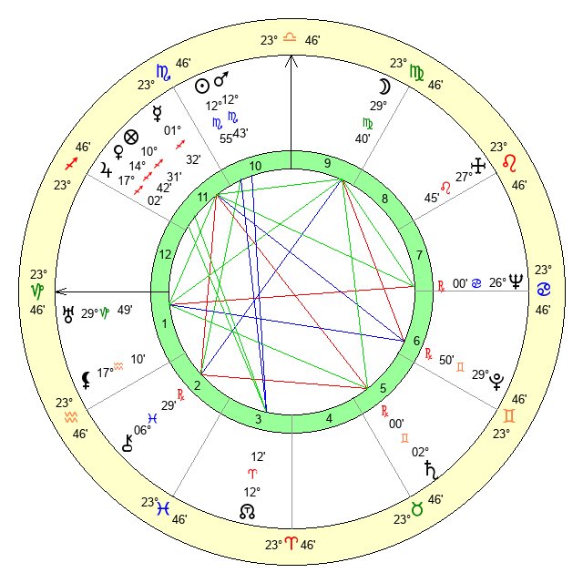 | Moon | 29 Virgo 39 | 15 Taurus 38 | 23 Scorpio 14 |