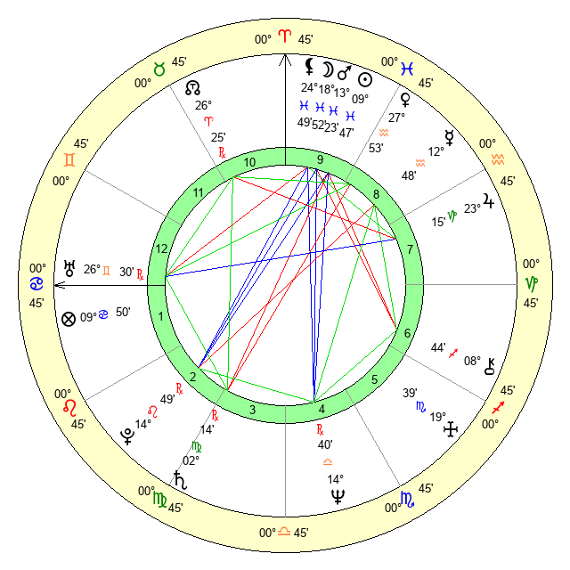 | Mars | 13 Pisces 23 | 17 Cancer 9 | 11 Taurus 37 |
