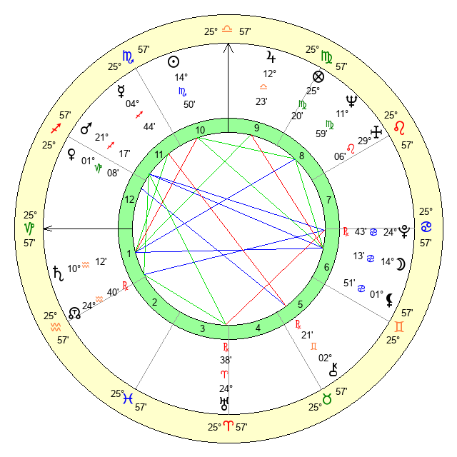 | Neptune | 11 Virgo 59 | 29 Pisces 39 | 11 Virgo 36 |
